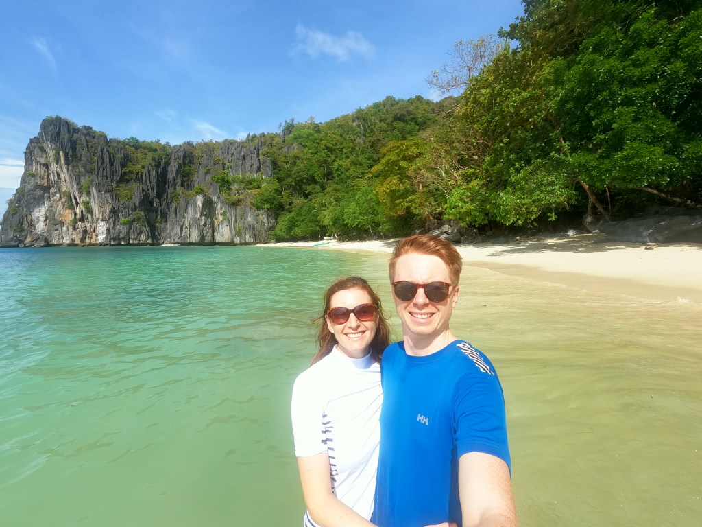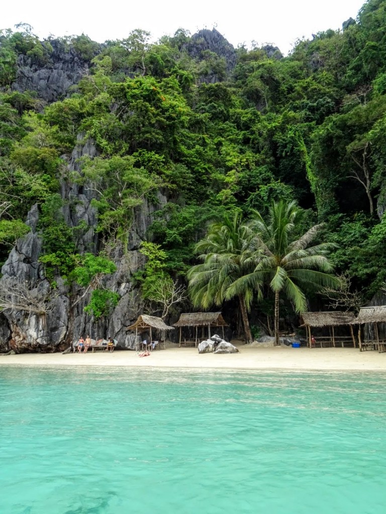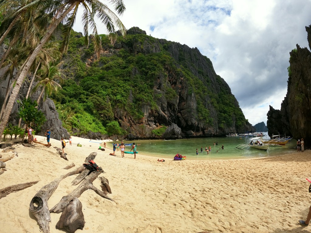 The Secret Lagoon is a small pool of water, completely cut off from the outside world by imposing limestone karst cliffs. It is accessed through a hole in the cliff not much bigger than a person. Next to the lagoon is a beautiful sandy beach, studded with some impressive rock formations. If you were to explore the secret lagoon early in the morning it would be extraordinary. Unfortunately it must be one of the worst kept secrets on all of Palawan and so a queue forms outside of it, waiting for tourists to clamber in have a poke around inside and them clamber back out. We queued for about 45 minutes to get in.
