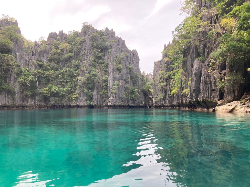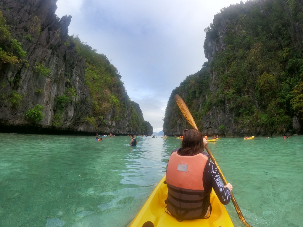 Big lagoon is one of the most famous sites in all of the Philippines. It is accessed from the sea via a narrow and very shallow channel with stunning, turquoise water. The channel then opens up into a deep water lagoon rimmed by steep limestone karsts. The channel is too shallow for the tour boats, so they congregate outside, while the boat men organise you some kayaks from a separate business for you to paddle into the lagoon (for an extra cost of 300php).