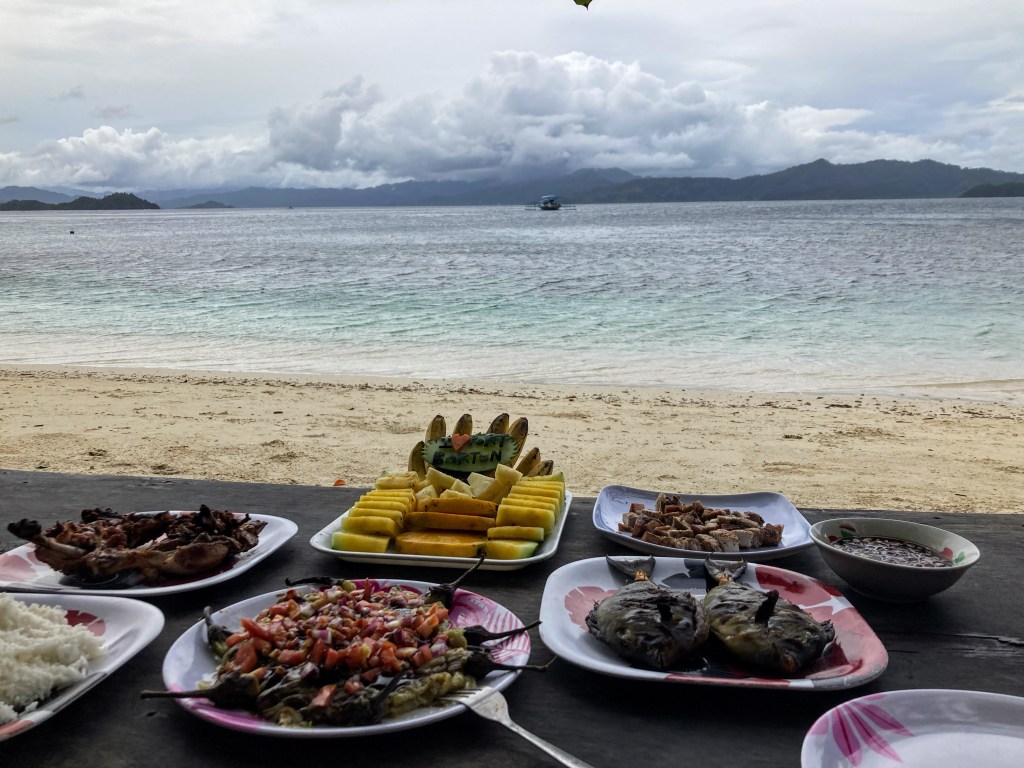 We had lunch on the beach at Maxima island; traditional Filipino bbq full of meat, fish and rice.