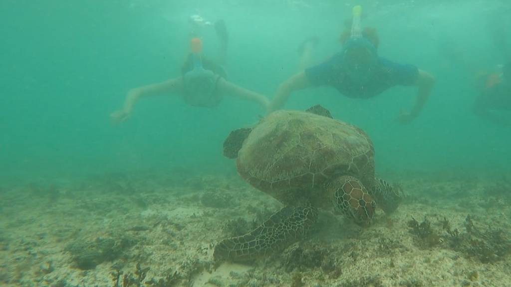 The guide told us that we would get the tour for free if we did not see turtles at Turtle Spot, a sandy area of sea grass between two islands. We saw two turtles and swam with them for quite a long while which was amazing!