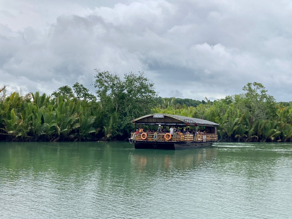 The final stop on the tour is to have lunch on the Loboc River Floating Restaurants. There are two places to do this, Loay or Loboc (both on the Loboc River). The food at Loay is thought to be better, while the Loboc cruise has more of a party atmosphere. The restaurant does a short pootle up the river, then turns round and pootles back.