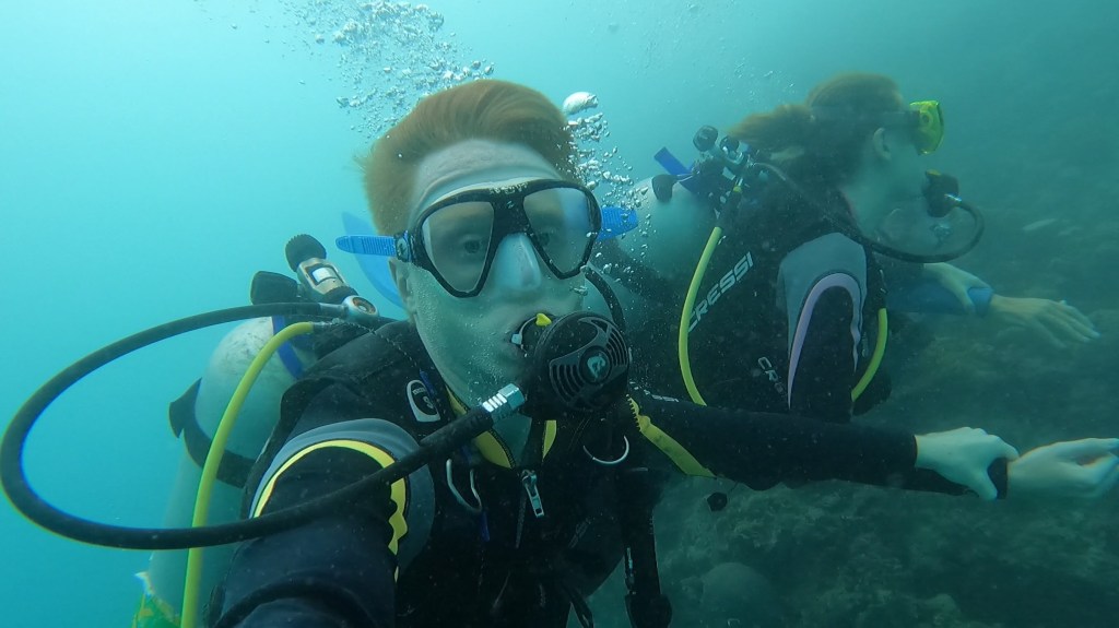 In Moalboal the rain really started to pick up, so we spent most of our time back under water. We had planned to do Kawasan Falls but it was closed due to the rain and chance of landslides. Instead we used the opportunity to try a Discovery Dive where we learnt the basics in the pool and then headed out into the sea.