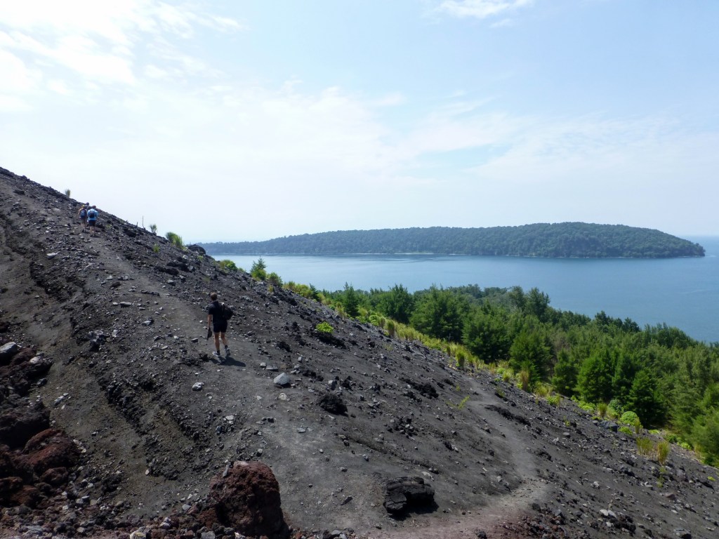 From Carita, a speed boat will take you out across the Sunda Strait, the channel between Java and Sumatra, to Anak Krakatoa and drop you on a black sand beach. When we went the place was deserted and we had the entire volcano to ourselves.