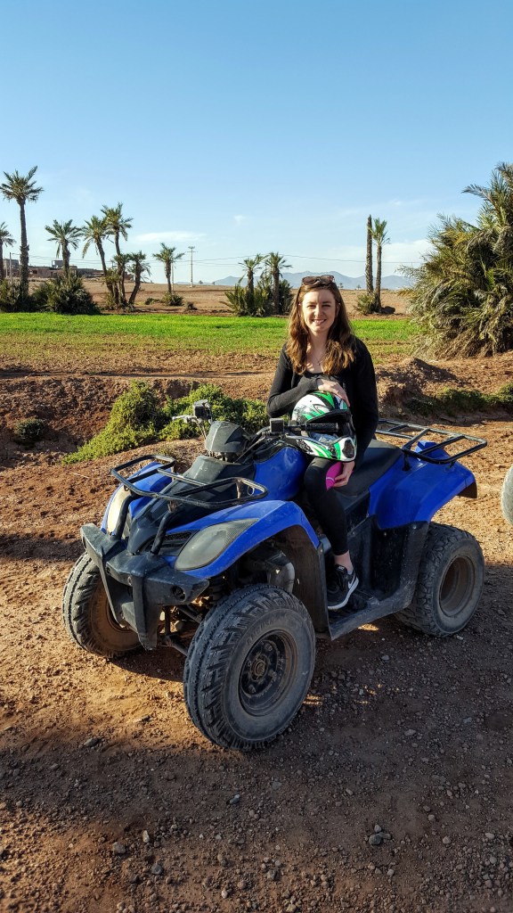 In the afternoon, head further north to La Palmeraie where you can go quad biking in the desert and camel riding through the palm groves. We booked the half day quad and camel package with a tour operator near our riad – there are plenty of tours offering similar experiences. We had a great (albeit very dusty) time zipping through the desert in a conga of quad bikes.