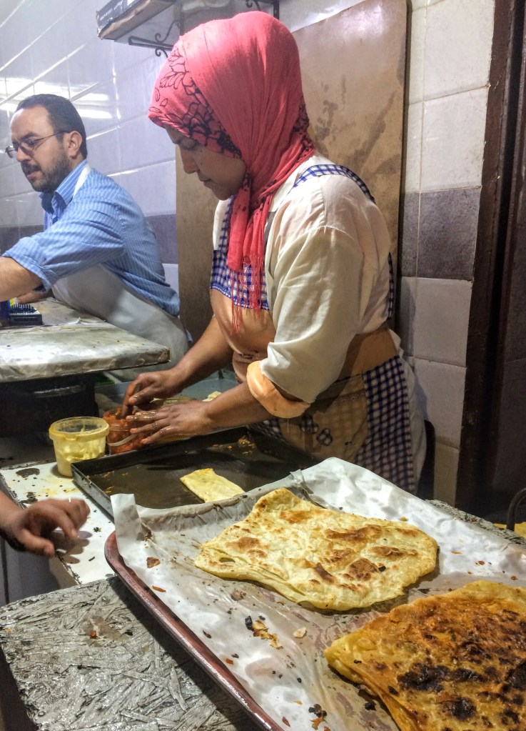 Overall, we had at least 8 courses including lamb, m’smen (sweet Moroccan flat bread), couscous with mint tea, snails, sardine burgers, fresh khobz (round Moroccan bread) and finished up with some sweet baklava and Moroccan sweets.