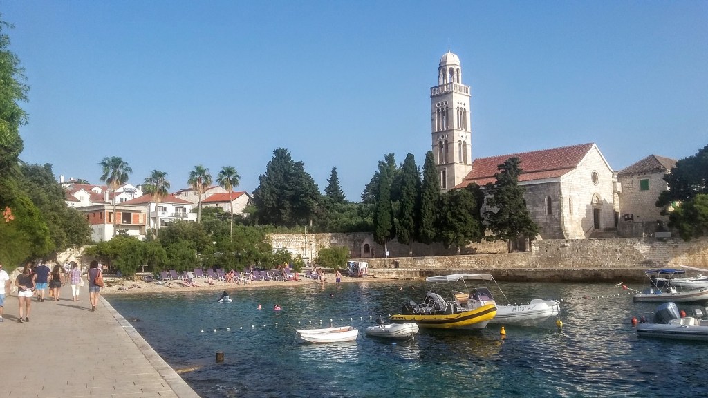 Once you’ve dumped your bags at your accommodation, spend some time exploring the town – it’s so small you won’t need long. Stroll along the sea front and continue around the headland on a lovely paved walk which stays close to the sea. Have lunch at Falko and on the way back stop in at Hula Hula beach bar for a drink (see Where to Eat & Drink in Hvar).