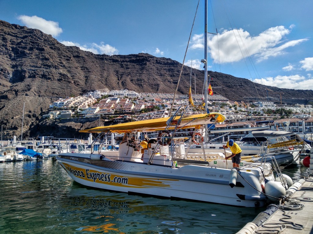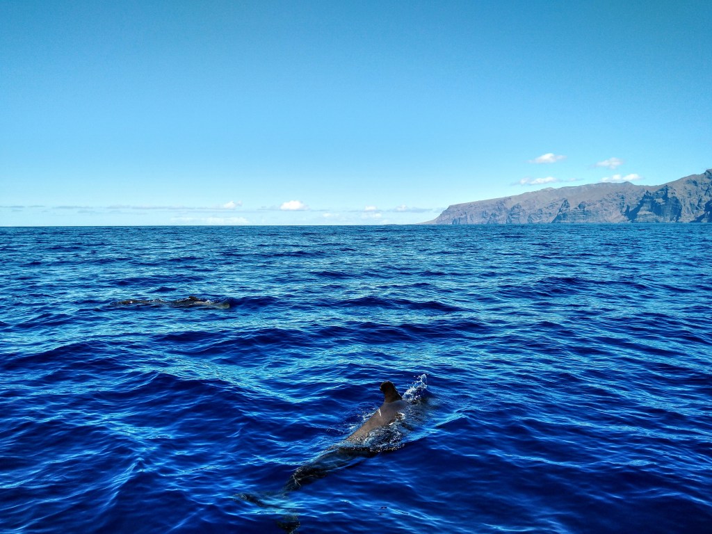 We went with Flipperuno, who have three different boats running slightly different tour packages. We went on the Masca Express 2 hour tour with one hour of whale watching and one hour admiring the cliffs and swimming in the clear waters beneath them in Masca bay. We saw Bryde whaless (which can be up to 16m long the crew told us) and a very friendly pod of pilot whales with their young calves.