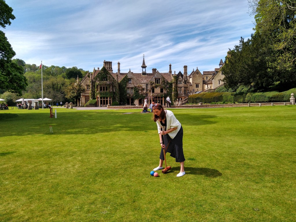 Next, visit the Manor House, a grand hotel with lovely gardens that are open to the public. We spent a good hour exploring their gardens, and were then pleasantly surprised to find a set of garden games that are also free to use and not just reserved for hotel guests. We had a fiercely competitive game of croquet and a game of giant Jenga in the grounds of the beautiful, ivy-curtained hotel.