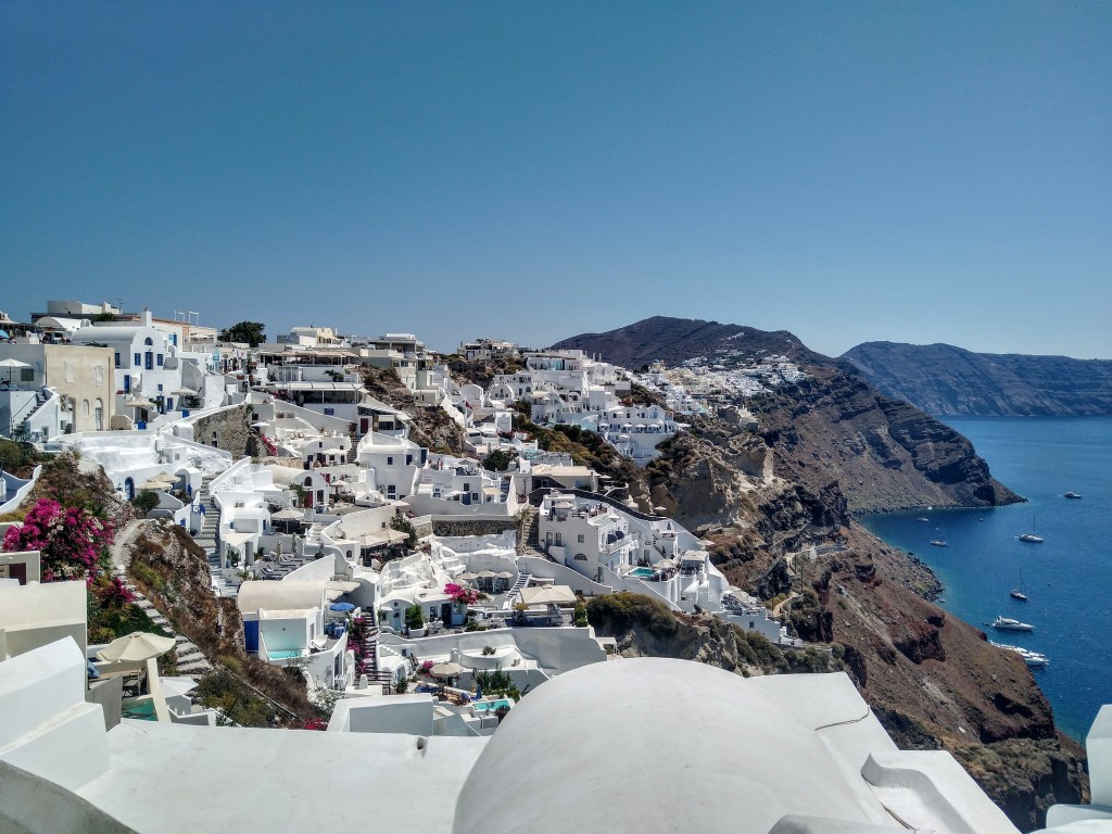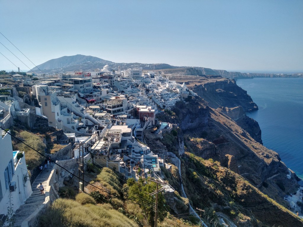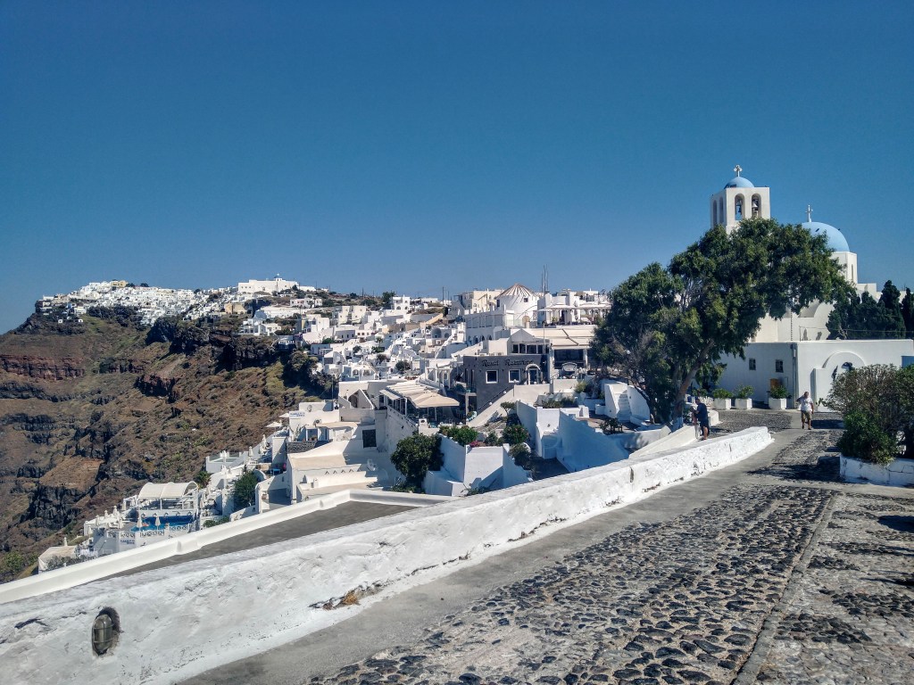 If we were to go again, we’d recommend staying in Firostefani, the town adjoining Fira. Here the town is cleaner, brighter, quieter and altogether much nicer than Fira. You’re still only a 15-minute downhill walk from Fira if you feel the need to go there. There are many different options for accommodation here, most of which are on a par with the prices in Fira.
